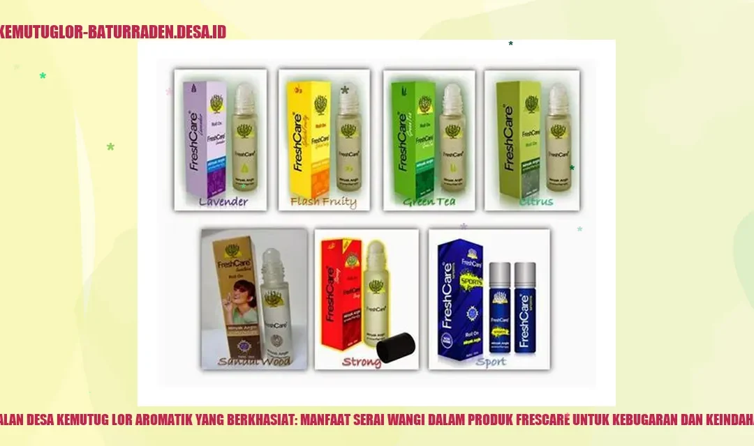 Untuk merawat keindahan dan kesehatan kulit, pilihan tepat adalah menggunakan bahan alami seperti serai wangi. Keunggulan Desa Kemutug Lor serta manfaat terbukti menjadikan produk Frescare sebagai solusi yang efektif dan alami untuk menghidupkan daya tarik kulit Anda.
