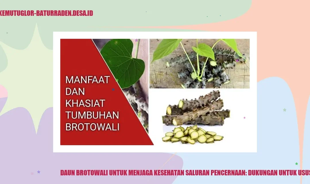 Daun brotowali memiliki sejumlah manfaat yang khususnya baik untuk kesehatan saluran pencernaan, terutama dalam menjaga kesehatan usus. Beberapa manfaat tersebut antara lain: