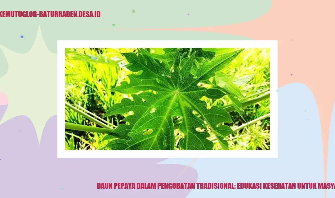 Daun pepaya telah lama digunakan dalam pengobatan tradisional sebagai ramuan alami untuk berbagai masalah kesehatan. Dalam artikel ini, kami akan memberikan edukasi kesehatan kepada masyarakat tentang manfaat dan penggunaan daun pepaya dalam pengobatan tradisional. Kami akan membahas berbagai khasiat, pengobatan, dan tautan ilmiah yang terkait dengan daun pepaya.