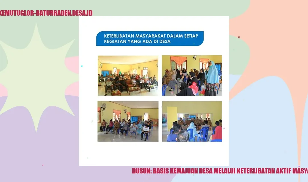 Dalam era kemajuan dan perkembangan teknologi yang sangat pesat, seringkali perkembangan hanya terjadi di kota-kota besar. Namun, seiring dengan semakin terbukanya akses informasi dan teknologi, serta kesadaran akan pentingnya partisipasi aktif masyarakat dalam pembangunan, perkembangan desa-desa juga semakin berkembang pesat. Salah satu contohnya adalah Dusun, sebuah konsep yang mengedepankan keterlibatan aktif masyarakat dalam kemajuan desa.
