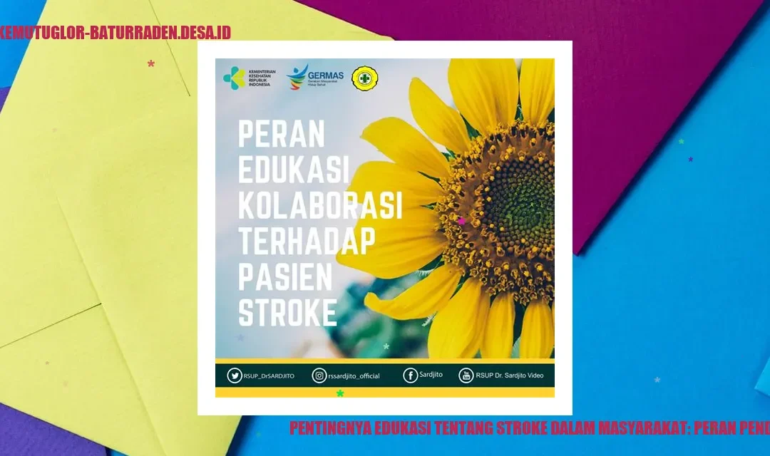 Pentingnya edukasi tentang stroke dalam masyarakat tidak dapat diabaikan. Melalui pendidikan yang tepat, masyarakat dapat memahami risiko dan tindakan pencegahan stroke dengan lebih baik. Pendidikan dapat disebarkan melalui berbagai media, seperti seminar kesehatan, kampanye kesadaran masyarakat, dan pelayanan kesehatan masyarakat. Selain itu, sekolah juga dapat berperan dalam menyebarkan edukasi tentang stroke kepada anak-anak. Dengan lebih memahami faktor risiko, gejala awal, dan tindakan pencegahan stroke, masyarakat dapat mengambil langkah untuk menjaga kesehatan dan mengurangi risiko stroke. Ingatlah, deteksi dini dan tindakan cepat sangat penting dalam mengatasi stroke. Jadi, jangan ragu untuk mencari bantuan medis jika mengalami gejala yang mencurigakan. Lebih baik mencegah darip