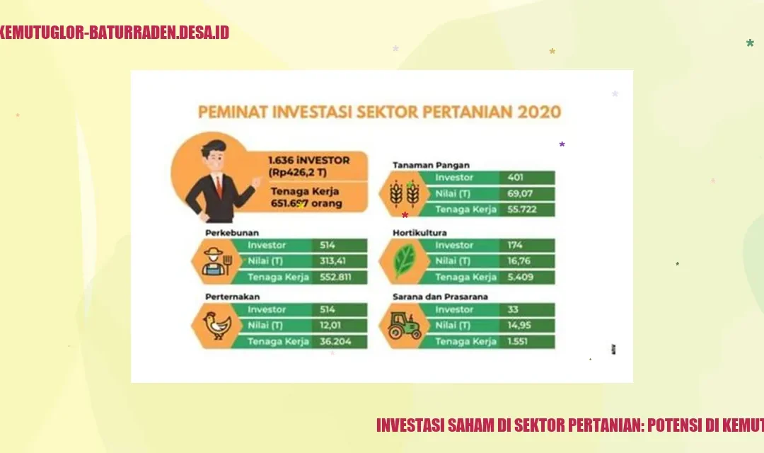 investasi di sektor pertanian menjadi semakin menarik dalam beberapa tahun terakhir. Pertumbuhan populasi yang terus meningkat memicu kebutuhan akan pangan yang lebih besar, sedangkan lahan pertanian yang terbatas membuat sektor ini menjadi fokus investasi. Salah satu daerah yang memiliki potensi besar dalam sektor pertanian adalah Kemutug Lor, sebuah desa yang terletak di kecamatan Baturraden, kabupaten Banyumas. Artikel ini akan menjelaskan mengapa investasi saham di sektor pertanian di kemutug lor memiliki potensi yang menguntungkan.