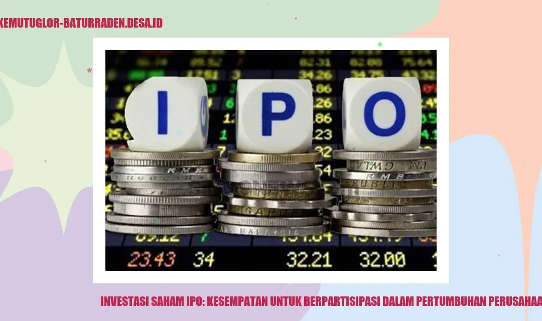 Investasi merupakan salah satu cara untuk mengembangkan kekayaan dan memperoleh keuntungan dari dana yang kita miliki. Salah satu bentuk investasi yang cukup menarik adalah investasi saham IPO (Initial Public Offering). IPO merupakan proses di mana perusahaan memperoleh pendanaan dengan menjual sebagian sahamnya kepada masyarakat melalui pasar saham yang terbuka. Berinvestasi dalam saham IPO memberikan kesempatan bagi para investor untuk berpartisipasi dalam pertumbuhan perusahaan baru yang sedang berkembang pesat.