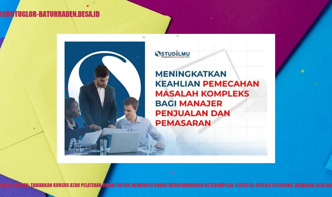 Dalam era digital yang semakin maju seperti sekarang, tidak ada batasan dalam hal pembelajaran. Masyarakat dapat memperoleh pengetahuan dan keterampilan baru melalui kursus atau pelatihan online. Salah satu platform yang populer di era digital ini adalah jasa pelatihan keahlian. Melalui jasa ini, orang dapat mengembangkan keterampilan tertentu, seperti fotografi, memasak, atau bahasa asing secara online.