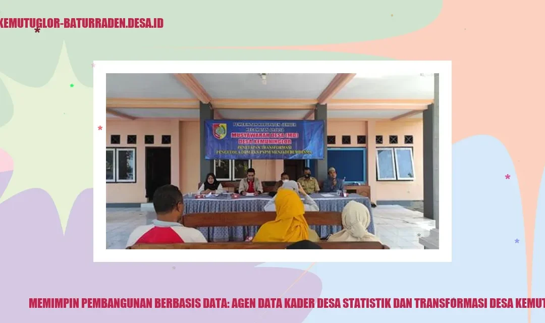 Memimpin pembangunan berbasis data di desa Kemutug Lor melibatkan peran yang kuat dari Agen Data Kader desa. Pengumpulan data statistik yang akurat dan terpercaya sangat penting dalam proses transformasi desa. Melalui penggunaan teknologi informasi dan komunikasi, desa Kemutug Lor dapat meningkatkan efisiensi dan efektivitas dalam pengambilan keputusan pembangunan. Meskipun menghadapi tantangan teknologi, dengan pelatihan dan kualifikasi yang tepat, Agen Data Kader desa dapat memimpin pembangunan berbasis data yang sukses.