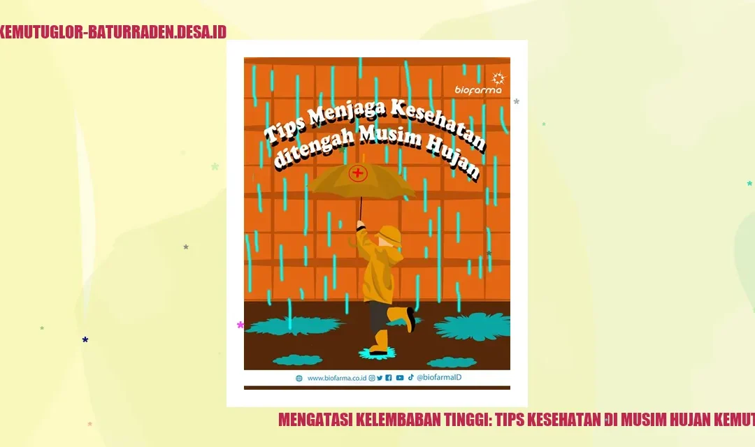 Desa Kemutug Lor, yang terletak di kecamatan Baturraden, Kabupaten Banyumas, merupakan daerah yang memiliki tingkat kelembaban tinggi, terutama saat musim hujan tiba. Kelembaban yang tinggi dapat membawa dampak negatif bagi kesehatan kita. Oleh karena itu, sangat penting bagi kita untuk mengetahui cara mengatasi kelembaban tinggi dan menjaga kesehatan selama musim hujan di Kemutug Lor.