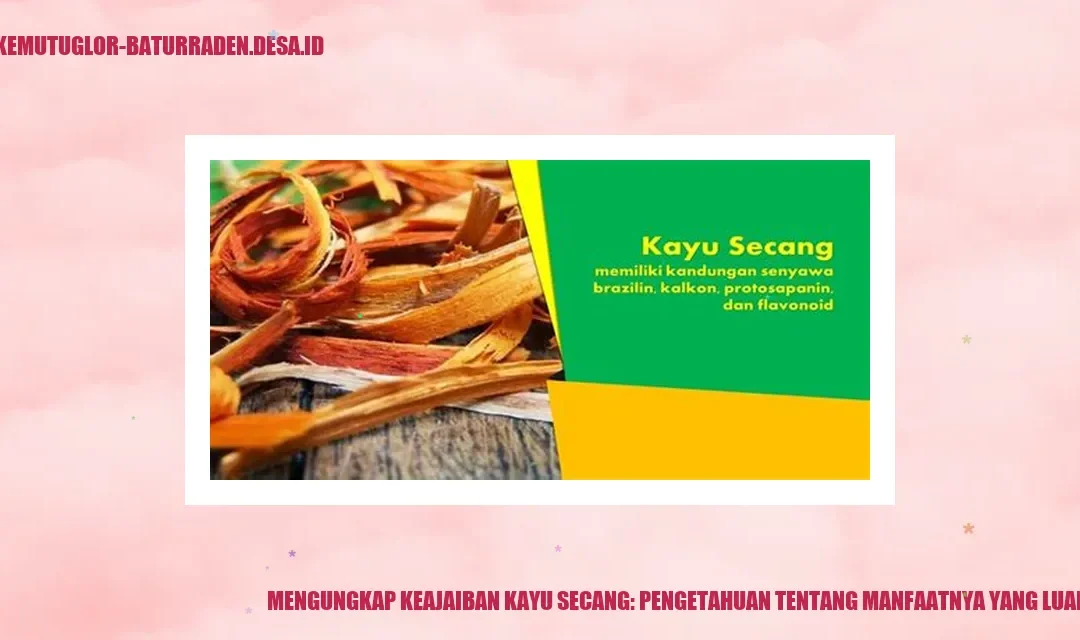 Apakah Anda pernah mendengar tentang kayu secang? Kayu secang adalah jenis kayu yang umum ditemukan di berbagai belahan dunia. Namun, tidak banyak orang yang mengetahui manfaat luar biasa yang dimilikinya. Dalam artikel ini, kita akan mengungkap keajaiban kayu secang dan mengeksplorasi pengetahuan tentang manfaatnya yang luar biasa. Jadi, marilah kita mulai perjalanan ini dan mencari tahu apa yang membuat kayu secang begitu istimewa!