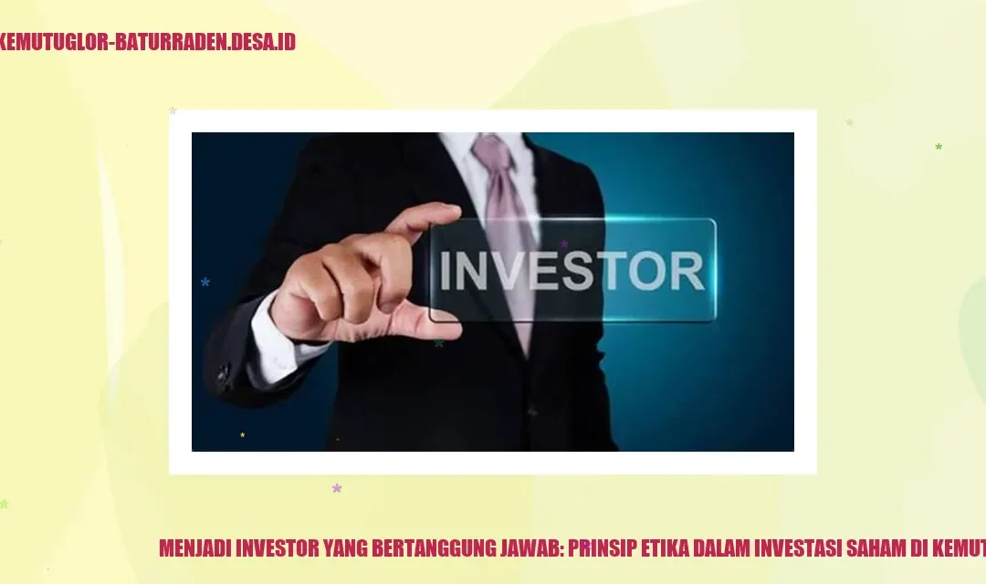 Investasi saham merupakan salah satu instrumen investasi yang populer di Indonesia. Dengan berinvestasi saham, seseorang memiliki kesempatan untuk menghasilkan keuntungan yang lebih besar dibandingkan dengan instrumen investasi lainnya. Namun, menjadi investor saham yang bertanggung jawab tidak hanya tentang menghasilkan keuntungan semata. Hal ini juga berkaitan dengan prinsip etika dalam melakukan investasi, khususnya dalam konteks investasi saham di Kemutug Lor.