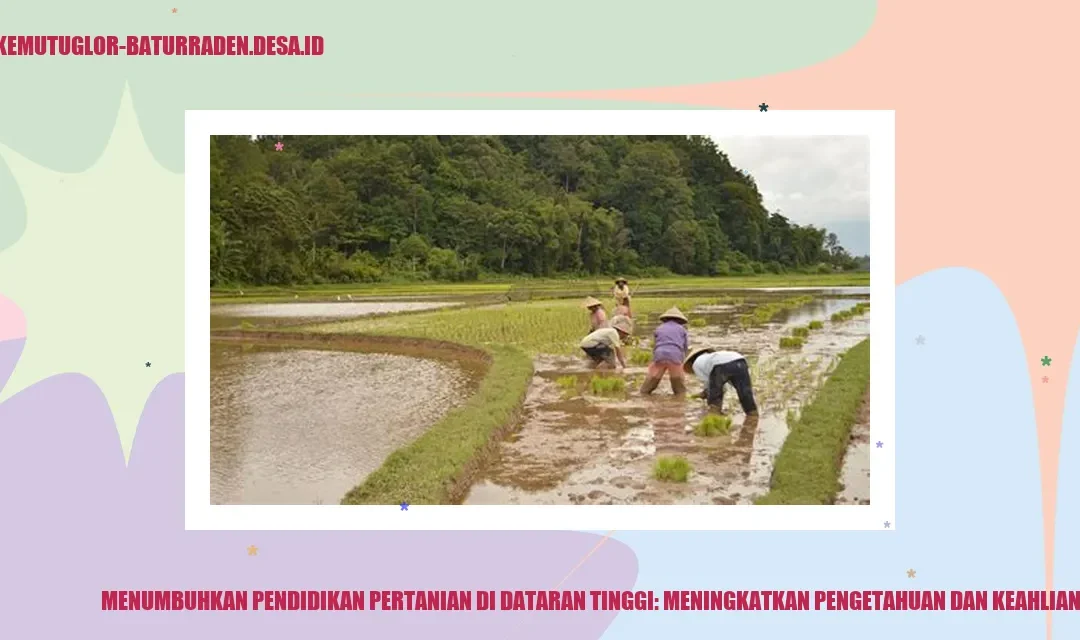 Dalam era industriisasi dan urbanisasi yang pesat, seringkali sektor pertanian diabaikan dan terpinggirkan. Namun, keberhasilan ekonomi dan ketahanan pangan suatu negara sangat bergantung pada sektor pertanian yang kuat dan berkelanjutan. Di dataran tinggi, petani menghadapi berbagai tantangan dalam meningkatkan produksi dan produktivitas mereka. Oleh karena itu, sangat penting untuk memberikan pendidikan pertanian yang baik kepada mereka untuk meningkatkan pengetahuan dan keahlian mereka dalam menghadapi tantangan ini. Dalam artikel ini, kita akan menjelajahi mengapa pendidikan pertanian di dataran tinggi sangat penting dan bagaimana hal itu dapat membantu petani mencapai keberhasilan dalam usaha mereka.