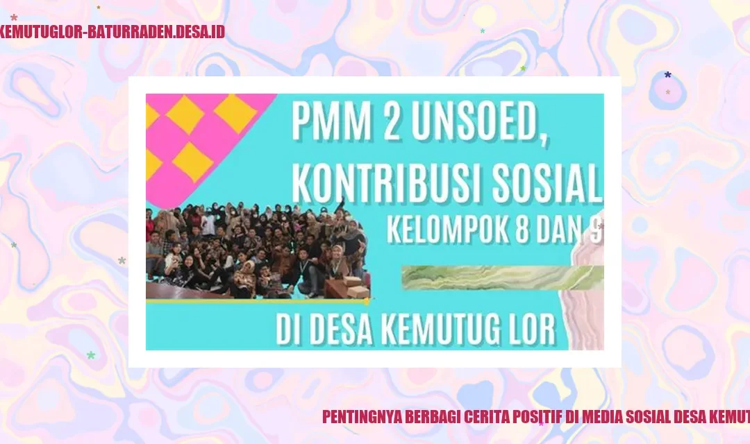 Ketika kita berbagi cerita positif tentang Desa Kemutug Lor di media sosial, kita dapat meningkatkan kesadaran masyarakat tentang keunikan dan potensi desa ini. Dengan berbagi cerita positif, kita dapat menarik minat orang-orang untuk mengunjungi dan mengetahui lebih lanjut tentang Desa Kemutug Lor.