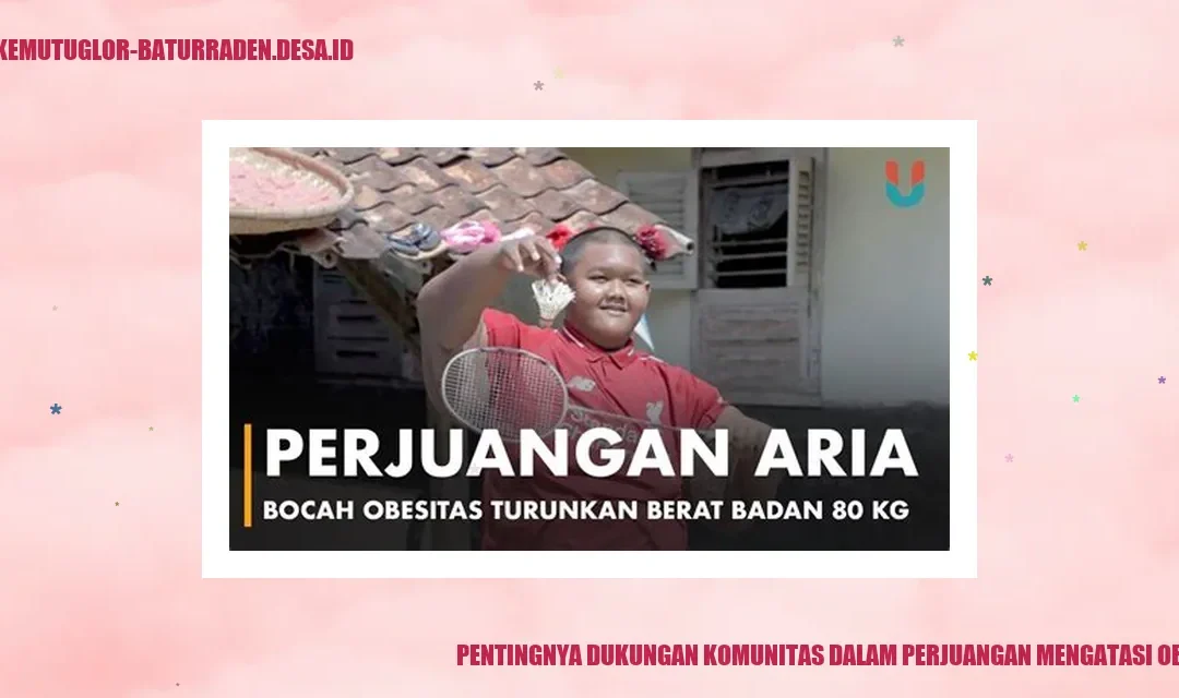 Dukungan komunitas sangat penting dalam perjuangan mengatasi obesitas. Dalam komunitas yang peduli dan inklusif, individu yang menderita obesitas dapat memperoleh motivasi, pengetahuan, dan dukungan yang diperlukan untuk mencapai dan mempertahankan berat badan yang sehat. Selain itu, melalui dukungan komunitas, stigma dan diskriminasi terhadap individu yang obesitas dapat dikurangi. Jadi, jangan ragu untuk mencari dan bergabung dengan komunitas yang mendukung obesitas, dan bersama-sama kita dapat menghadapi dan mengatasi masalah ini.