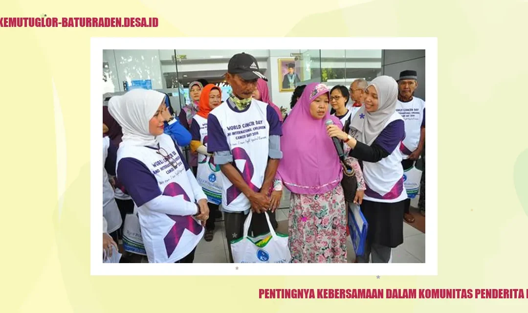 Kanker adalah salah satu penyakit yang sangat mempengaruhi kehidupan banyak orang di seluruh dunia. Baik mereka yang didiagnosis sebagai penderita kanker maupun keluarga dan teman-teman mereka harus menghadapi tantangan fisik, emosional, dan psikologis yang besar selama perjalanan mereka melawan penyakit ini. Dalam situasi seperti ini, pentingnya kebersamaan dalam komunitas penderita kanker tidak boleh diabaikan. Melalui dukungan dan persaudaraan dalam komunitas, penderita kanker dapat merasa didengar, dimengerti, dan tidak sendirian dalam perjuangan mereka. Artikel ini akan menjelaskan mengapa kebersamaan dalam komunitas penderita kanker sangat penting dan bagaimana hal itu dapat membantu meningkatkan kualitas hidup mereka.