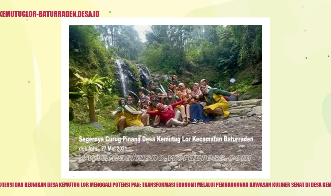 Keunikan dan potensi Desa Kemutug Lor, yang terletak di Kecamatan Baturaden, Kabupaten Banyumas, Provinsi Jawa Tengah, merupakan peluang yang besar untuk menggali sektor ekonomi melalui pengembangan kawasan kuliner sehat. Dengan mengoptimalkan Pangan, Agroindustri, dan Pariwisata (PAN), desa ini berusaha melakukan transformasi ekonomi yang berkelanjutan.
