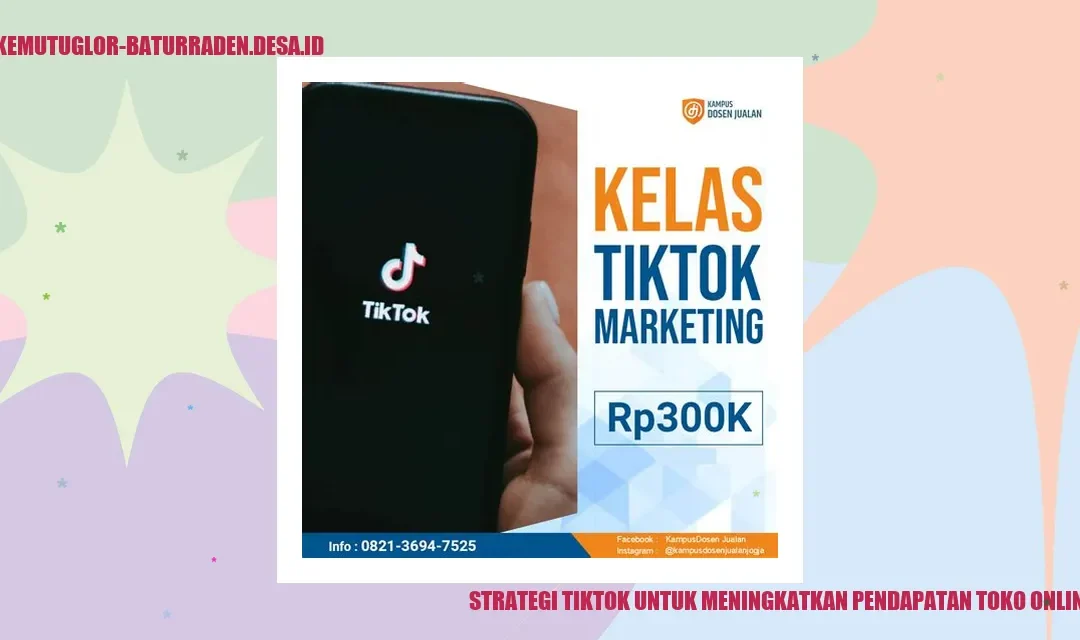 Apakah Anda memiliki toko online yang ingin meningkatkan pendapatannya? Apakah Anda sedang mencari strategi pemasaran yang efektif untuk mencapai tujuan tersebut? Jika demikian, Anda berada di tempat yang tepat! Dalam artikel ini, kami akan membahas tentang strategi TikTok yang dapat membantu Anda meningkatkan pendapatan toko online Anda. Dengan menggunakan platform media sosial yang sedang naik daun ini, Anda dapat menjangkau audiens yang lebih luas dan lebih terlibat dengan mereka. Kami akan memberikan tips dan trik yang relevan untuk membantu Anda memaksimalkan manfaat dari TikTok. Mari kita mulai!