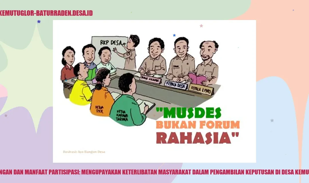 Partisipasi masyarakat dalam pengambilan keputusan di desa merupakan hal yang penting untuk memastikan pembangunan yang berkelanjutan dan inklusif. Di Desa Kemutug Lor, Banyumas, partisipasi masyarakat memiliki tantangan dan manfaat yang harus dihadapi. Dalam artikel ini, kami akan membahas tantangan dan manfaat partisipasi dalam pengambilan keputusan di desa tersebut.
