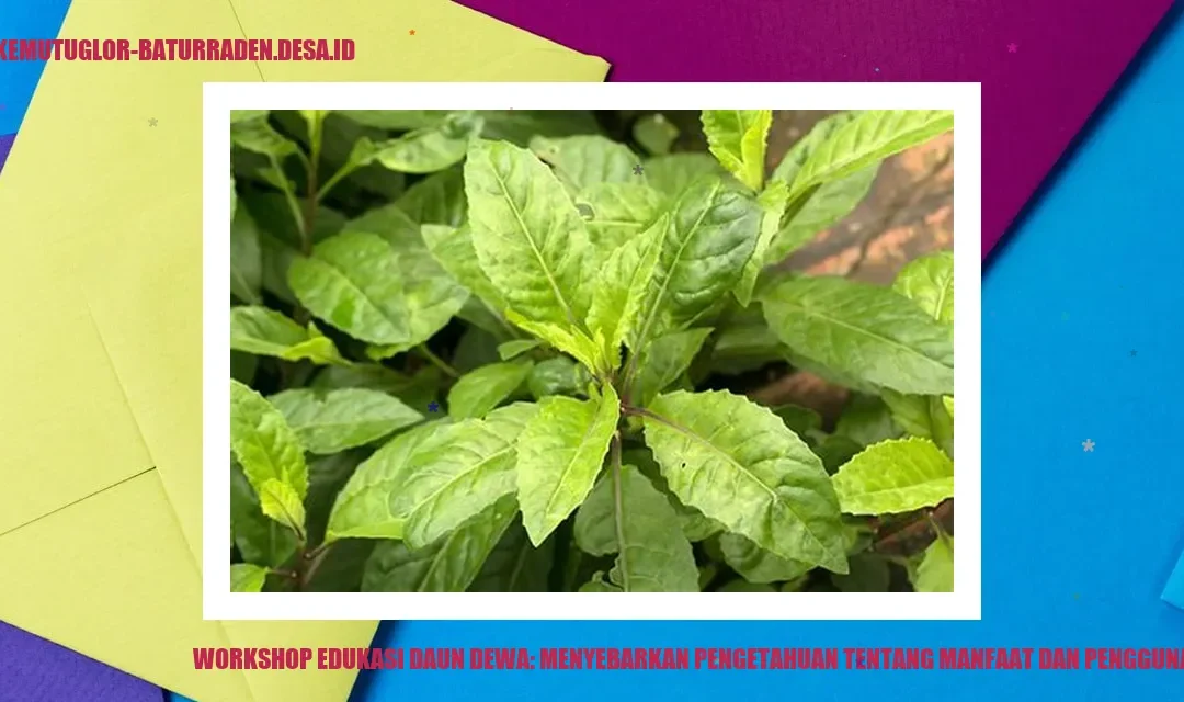 Workshop Edukasi Daun Dewa: Menyebarkan Pengetahuan tentang Manfaat dan Penggunaannya adalah acara yang memungkinkan peserta untuk belajar langsung tentang daun dewa dan cara mengolahnya menjadi obat tradisional. Workshop ini memberikan kesempatan untuk meningkatkan pemahaman tentang manfaat daun dewa dalam pengobatan tradisional dan memperoleh keterampilan praktis dalam penggunaannya. Bagi mereka yang tertarik untuk mempelajari lebih lanjut tentang daun dewa, menghadiri workshop ini akan menjadi pengalaman yang berharga.